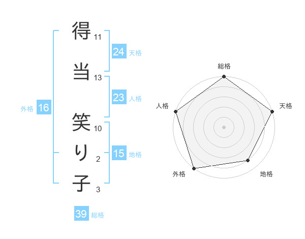 得当 笑り子さんの天格は24画の5点!