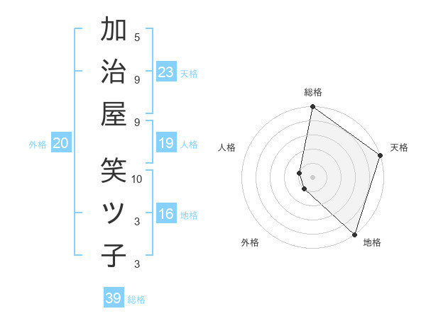 加治屋 笑ツ子さんを姓名の画数から五運を鑑定