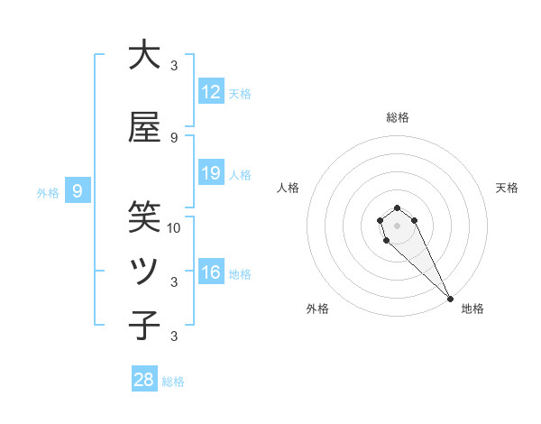 大屋 笑ツ子さんを姓名の画数から五運を鑑定