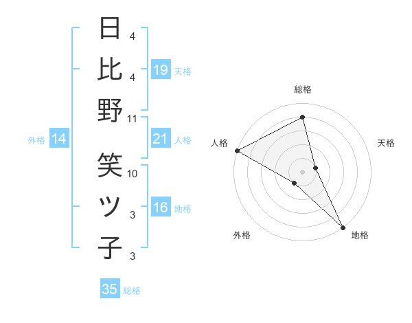 日比野 笑ツ子さんの総格は35画の4点