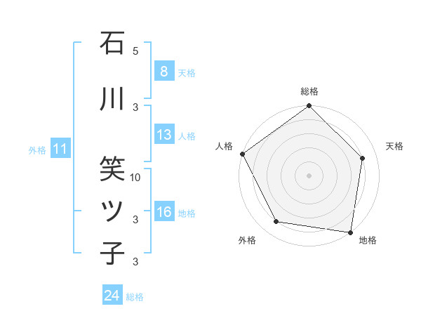 石川 笑ツ子さんを姓名の画数から五運を鑑定