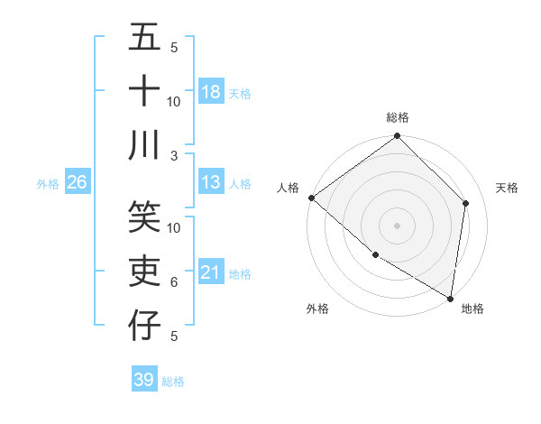 五十川 笑吏仔さんを姓名の画数から五運を鑑定