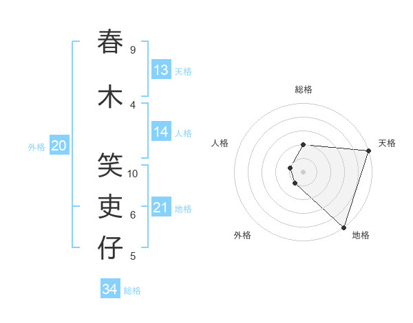 春木 笑吏仔さんの天格は13画の5点!