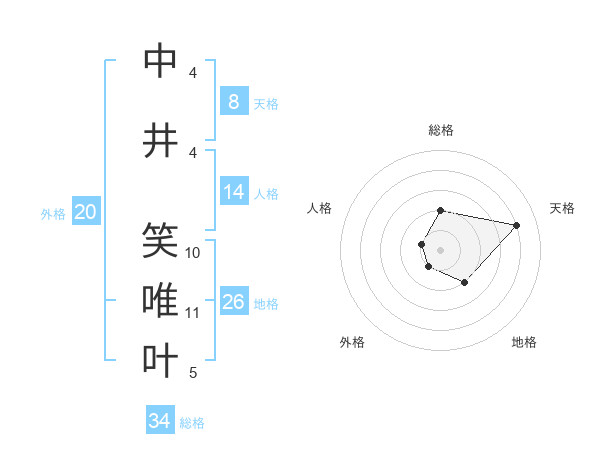 中井 笑唯叶さんの総格は34画の2点!