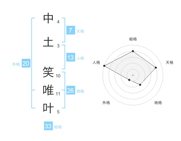 中土 笑唯叶さんを姓名の画数から五運を鑑定