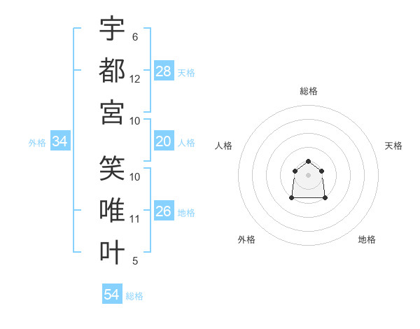宇都宮 笑唯叶さんを姓名の画数から五運を鑑定