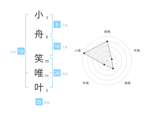 小舟 笑唯叶さんの総格は35画の4点!
