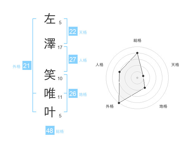 左澤 笑唯叶さんを姓名の画数から五運を鑑定