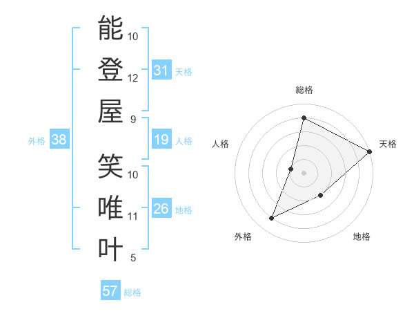 能登屋 笑唯叶さんを姓名の画数から五運を鑑定