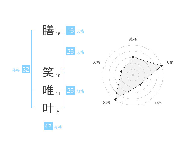 膳 笑唯叶さんを姓名の画数から五運を鑑定