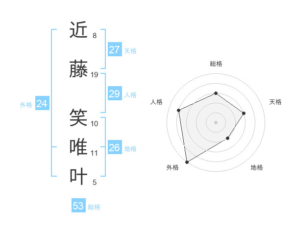 近藤 笑唯叶さんを姓名の画数から五運を鑑定