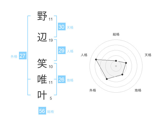 野辺 笑唯叶さんを姓名の画数から五運を鑑定