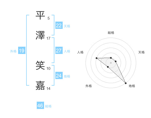 平澤 笑嘉さんを姓名の画数から五運を鑑定