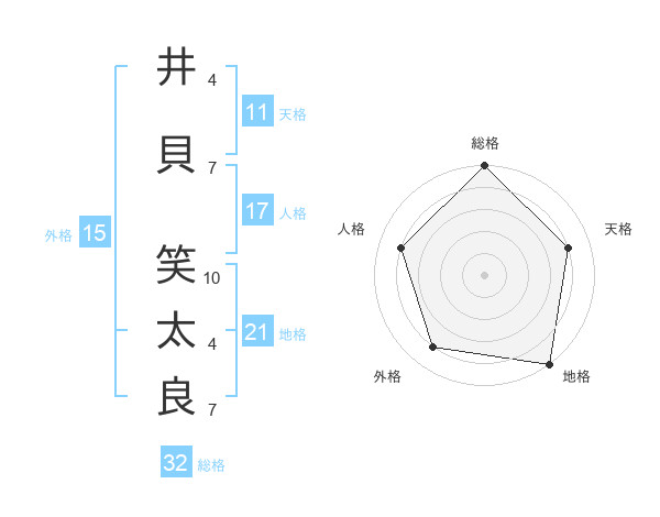 井貝 笑太良さんを姓名の画数から五運を鑑定