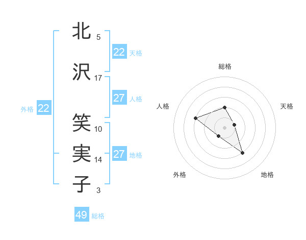 北沢 笑実子さんを姓名の画数から五運を鑑定