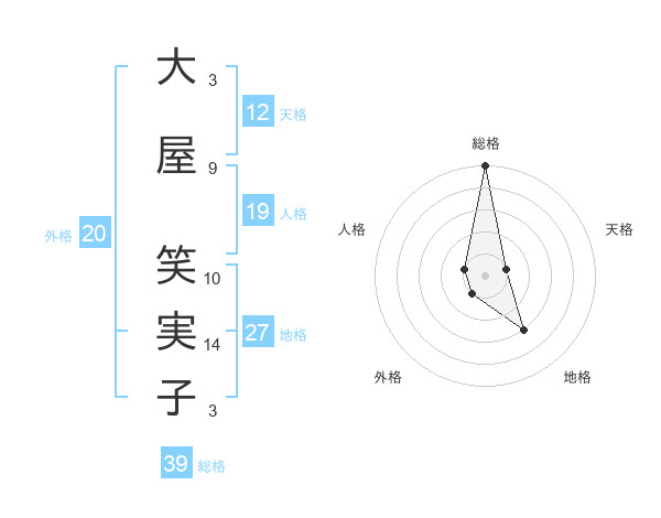 大屋 笑実子さんを姓名の画数から五運を鑑定