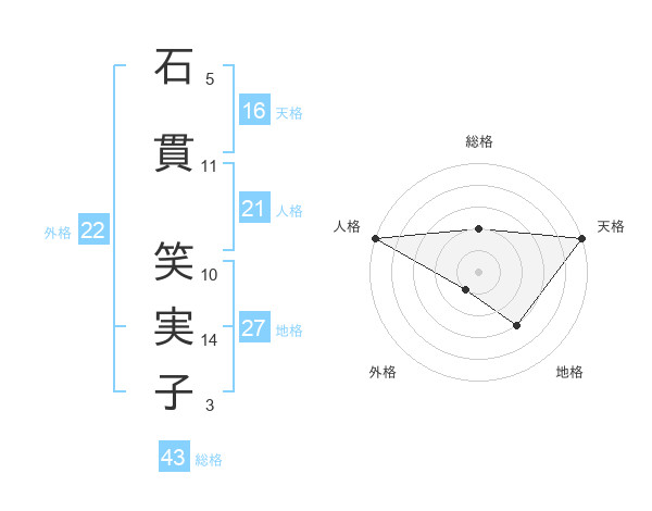 石貫 笑実子さんの外格は22画の1点!