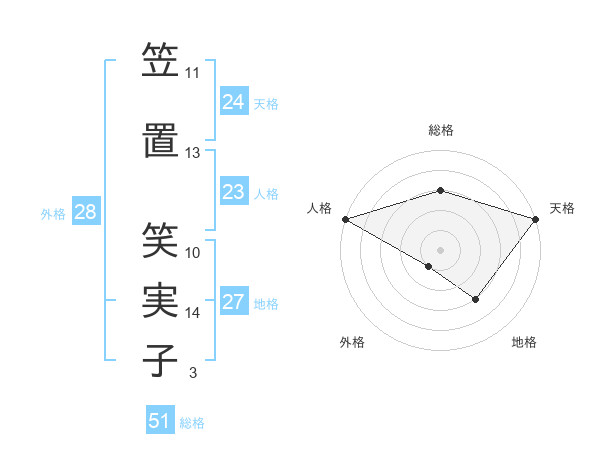 笠置 笑実子さんを姓名の画数から五運を鑑定