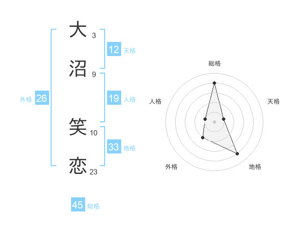 大沼 笑恋さんを姓名の画数から五運を鑑定