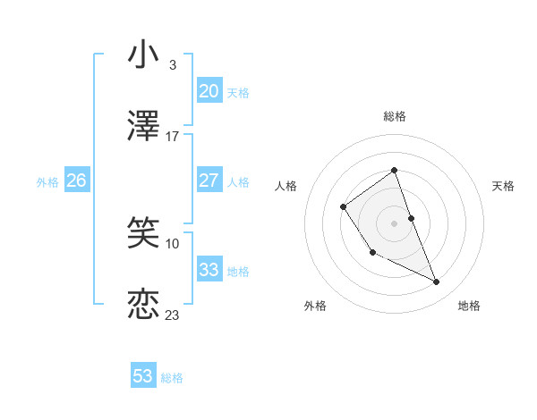 小澤 笑恋さんを姓名の画数から五運を鑑定