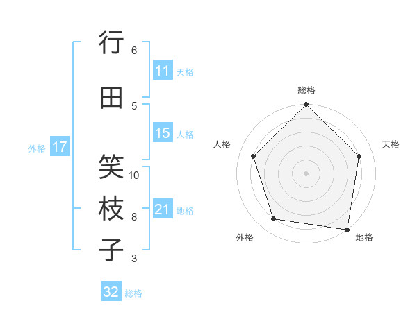 行田 笑枝子さんを姓名の画数から五運を鑑定