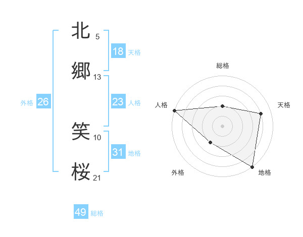 北郷 笑桜さんを姓名の画数から五運を鑑定