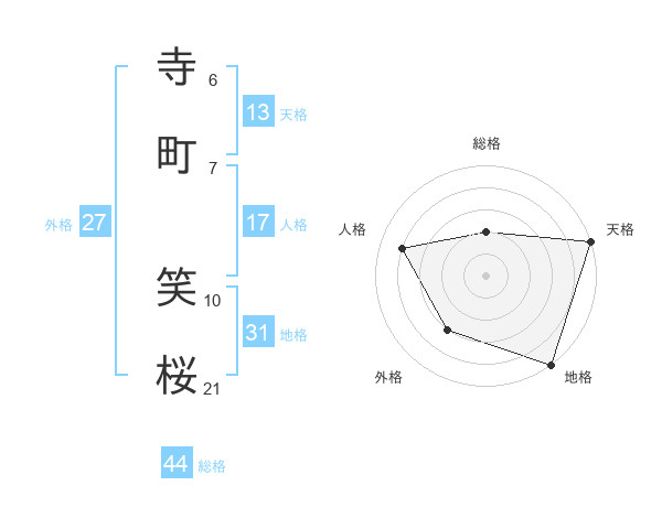 寺町 笑桜さんの総格は44画の2点!