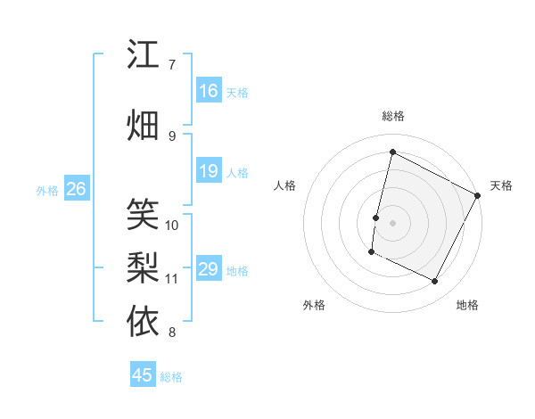 江畑 笑梨依さんの総格は45画の4点!