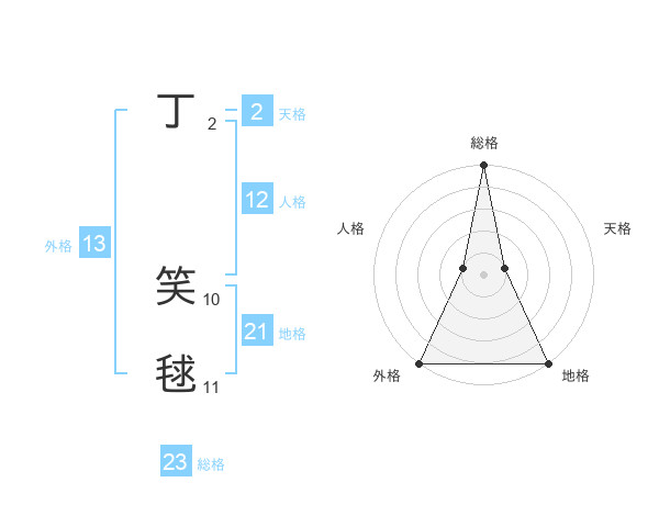 丁 笑毬さんの総格は23画の5点!