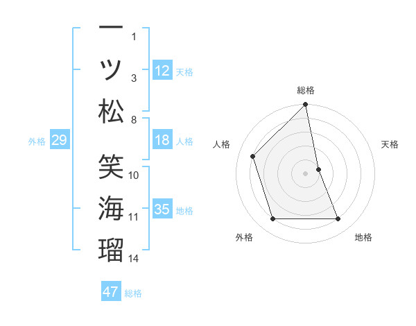 一ツ松 笑海瑠さんの総格は47画の5点!
