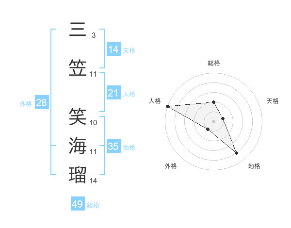 三笠 笑海瑠さんを姓名の画数から五運を鑑定