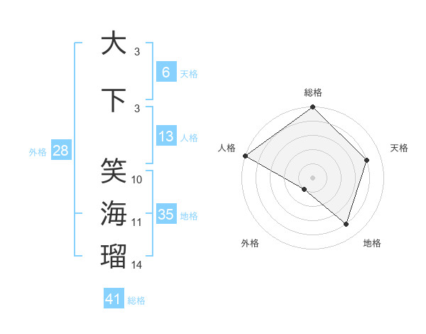 大下 笑海瑠さんを姓名の画数から五運を鑑定