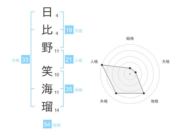 日比野 笑海瑠さんを姓名の画数から五運を鑑定
