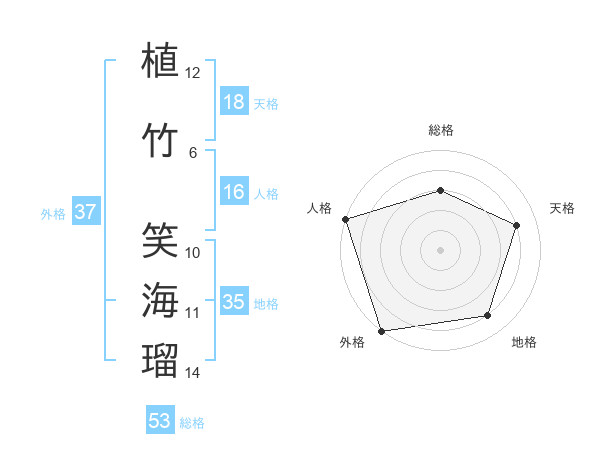 植竹 笑海瑠さんの外格は37画の5点!