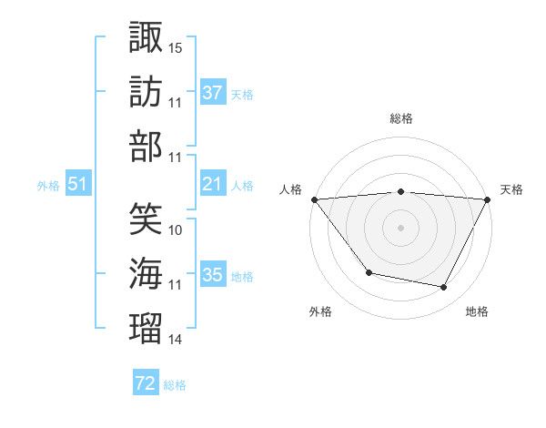 諏訪部 笑海瑠さんの外格は51画の3点!