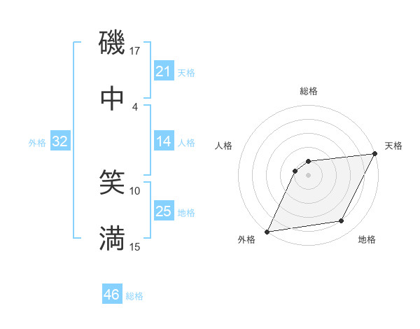 磯中 笑満さんを姓名の画数から五運を鑑定