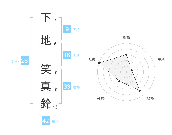 下地 笑真鈴さんの外格は26画の2点!