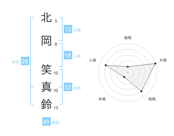 北岡 笑真鈴さんの天格は13画の5点!