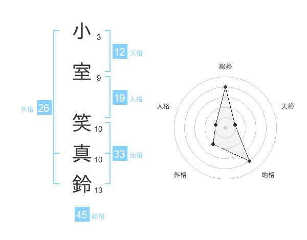 小室 笑真鈴さんの総格は45画の4点!