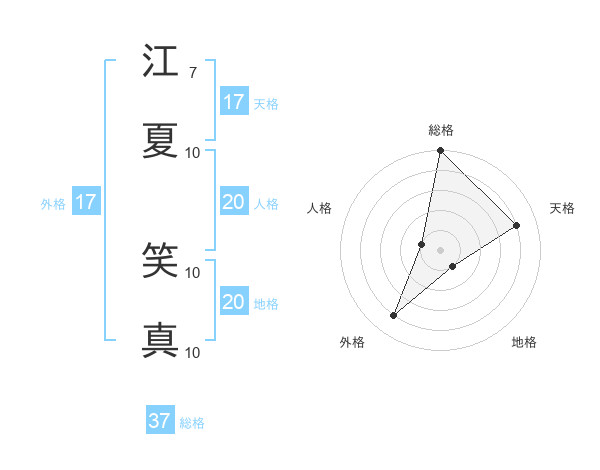 江夏 笑真さんを姓名の画数から五運を鑑定
