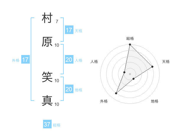 村原 笑真さんの総格は37画の5点!