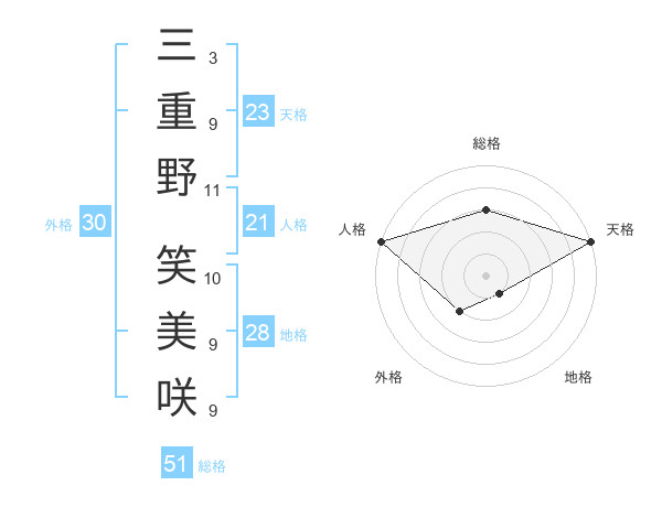 三重野 笑美咲さんを姓名の画数から五運を鑑定