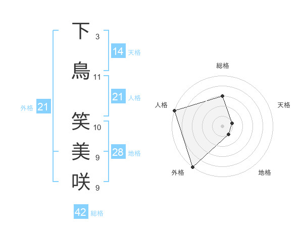 下鳥 笑美咲さんの総格は42画の3点!