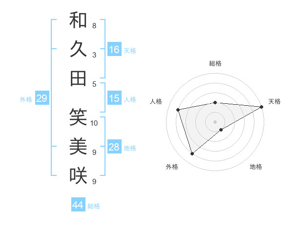 和久田 笑美咲さんを姓名の画数から五運を鑑定