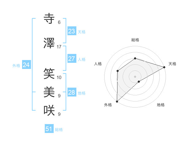 寺澤 笑美咲さんを姓名の画数から五運を鑑定