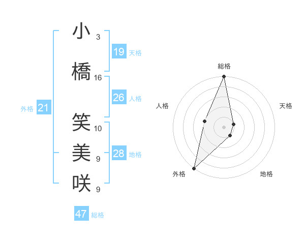 小橋 笑美咲さんの総格は47画の5点!