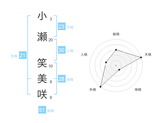 小瀬 笑美咲さんを姓名の画数から五運を鑑定