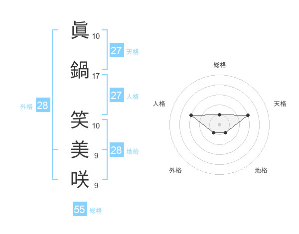 眞鍋 笑美咲さんを姓名の画数から五運を鑑定