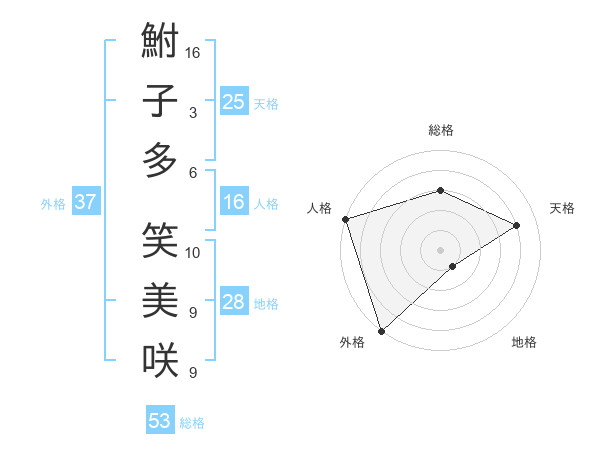 鮒子多 笑美咲さんの外格は37画の5点!