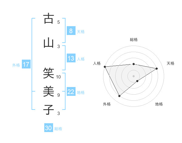 古山 笑美子さんを姓名の画数から五運を鑑定